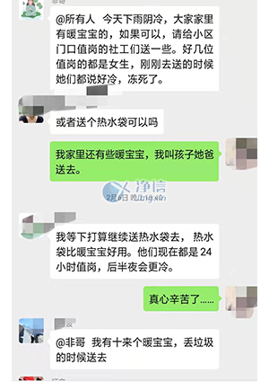 除了儀器設(shè)備,凈信人也在這場戰(zhàn)“役”中獻上了自己綿薄之力。雖不能上一線,卻奉上了自己的善舉,盡自己所能共抗疫情。自愿報名志愿者,在寒冷的冬天一站就是24小時。捐款捐物,捐口罩、防護用品、暖寶寶、以及一些食品物品。