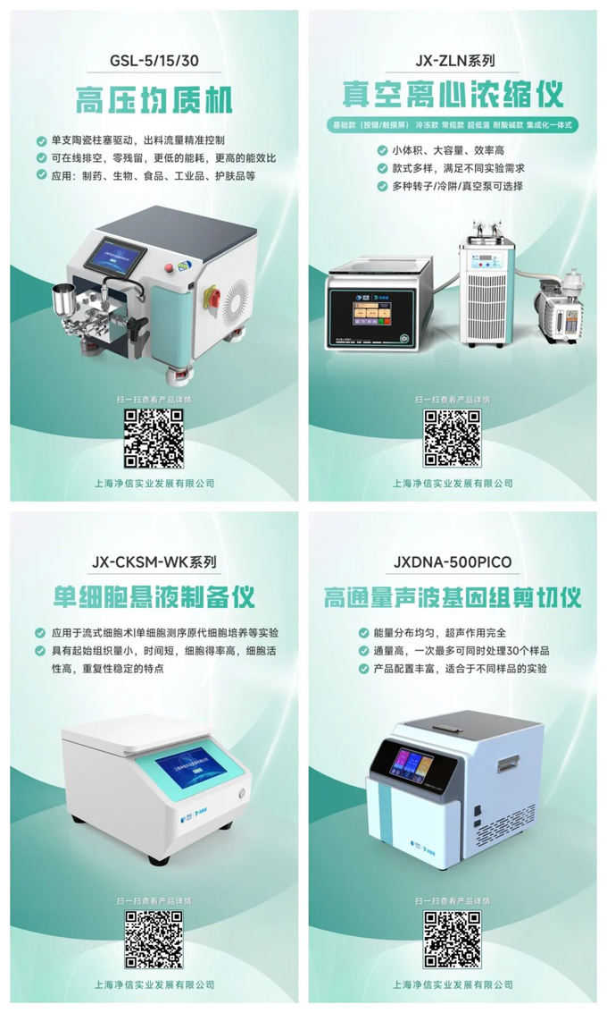 上海凈信科研者系列產品的上市推廣,包括真空離心濃縮儀、高壓均質機、單細胞懸液制備儀、高通量聲波基因組剪切儀等,標志著公司從單一產品向多元化發展的轉變,拓展了市場影響力。更是了體現了上海凈信在實驗室設備領域的專業性和技術實力,能夠滿足不同科研和工業應用的需求。
